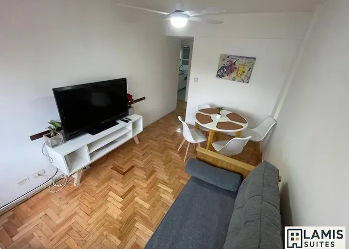 The 1-room 2 ambientes en Almagro-Abasto by Lamis Suites overlooks the city and is situated 6 minutes on foot from Teatro Ciego Buenos Aires. The unique 335-foot Puente de la Mujer Pedestrian Bridge is a 10-minute drive from the apartment, and Museo Nacional de Arte Decorativo is nearly a 25-minute walk away.